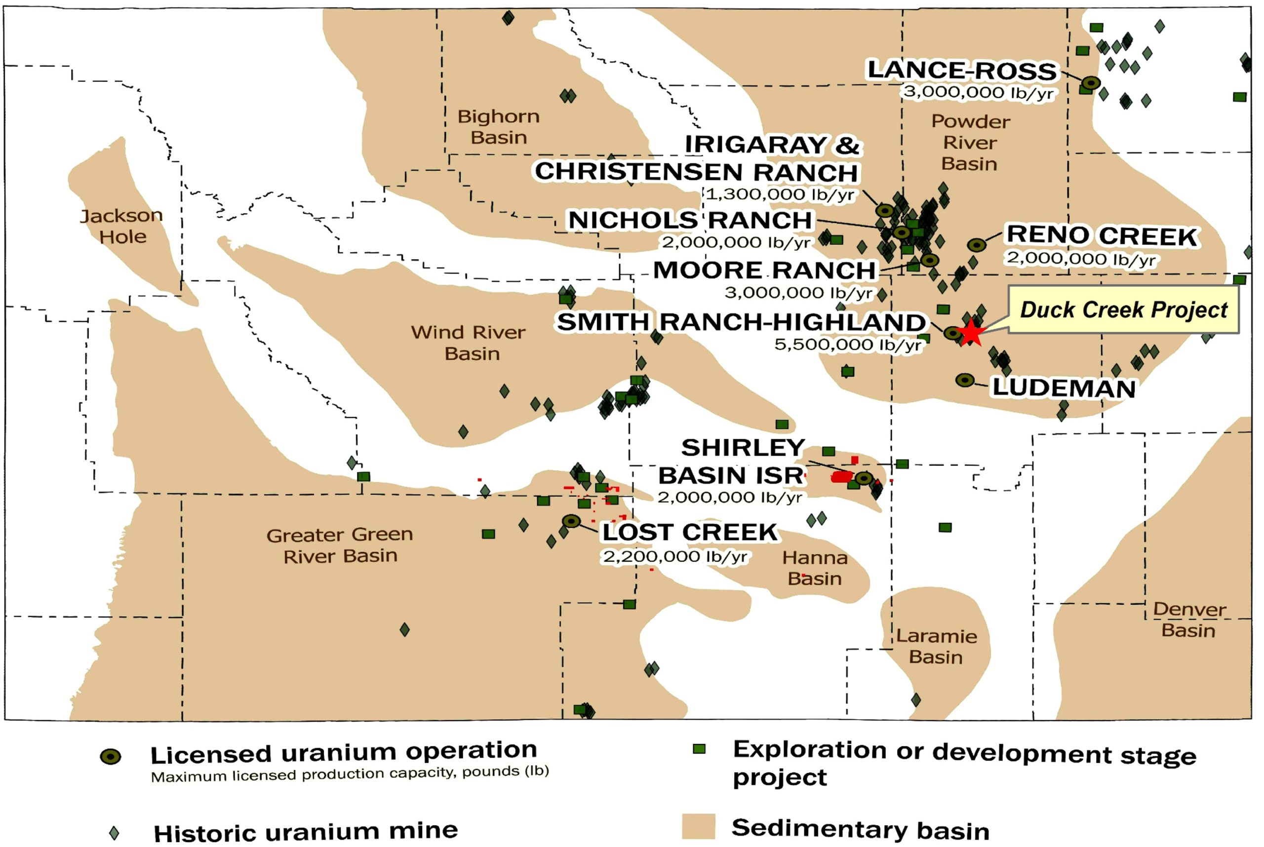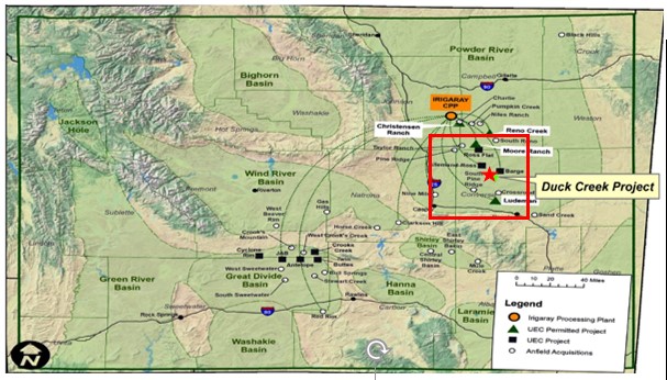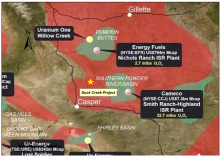 - The Duck Creek uranium project is located in the Southern Powder River basin (PRB), Wyoming, USA.